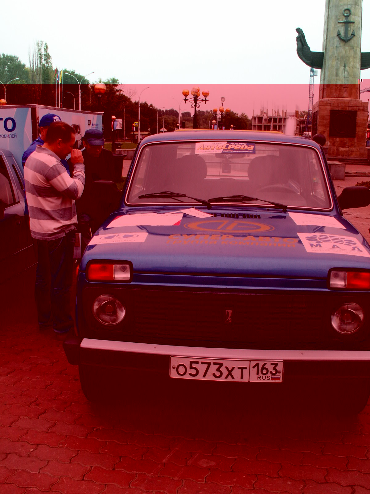 Итак, сегодня был торжественный старт от Научно-технического центра ВАЗа. Провожали нас Петр Михайлович Прусов и мэр Тольятти Сергей Игоревич Андреев. Из Нивовской семьи едут пикап от "Супер-Авто" (за его рулем - ваш покорный слуга